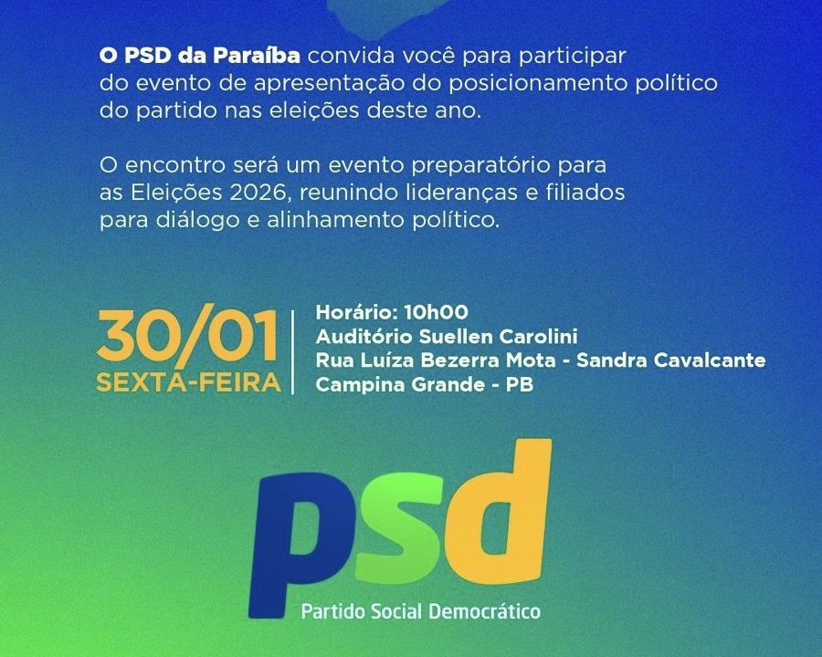 Na próxima sexta-feira (30), às 10h, em Campina Grande, o ex-deputado federal Pedro Cunha Lima anuncia o apoio ao pré-candidato a governador Cícero Lucena. O convite já está sendo disparado para as lideranças políticas. Além de Pedro, Cássio Cunha Lima e Tovar Correia Lima também devem participar e a presença do atual deputado federal Romero […]